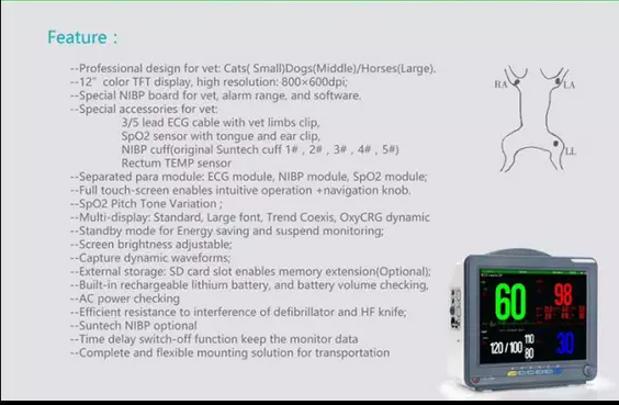 Feature : ECG, Spo2,NIBP,Temperature,Heart Rate